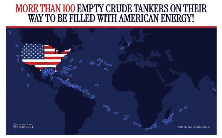 - As of yesterday, 167 crude tankers had declared U.S. destinations, with 103 empty vessels heading to American ports to load U.S. crude.